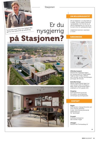 KONTAKT Megler: DNB Eiendom, Nybygg Romerike ved: Tone Therese Johansen E-post: tone.therese.johansen@ dnbeiendom.no Tlf.: 412 32 803 Prospekt: boribolig.no/stasjonen eller kontakt megler Utbygger: Eidsvoll Verk Tomteselskap AS