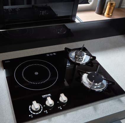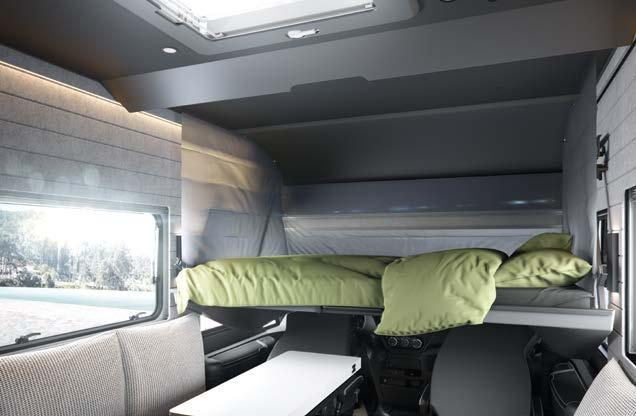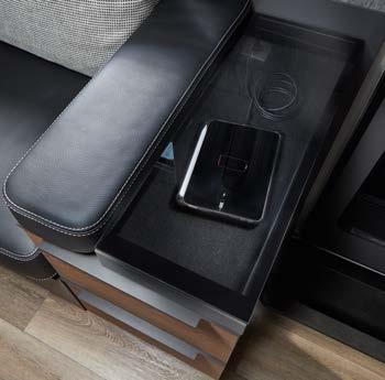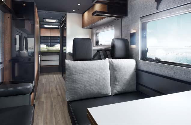 Our comfortable bench seat transforms into two safe belted seats* with one easy step. And looks amazing in both positions thanks to your customised upholstery design. 1 Extra storage space under the bench seat and in the sideboard 2 Sideboard with USB charging port 3 Smart TV, 32” * electronic retraction mechanism 1 2 3 *optional extra 26 LIVING AREA