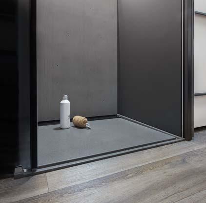 1 Glass dividing wall to sleeping area optional button for making it opaque 2 Floor-level rain shower with a concrete finish shower tray in mineral composite material 3 Smart use of space with an additional shelf 3 1 2 The spacious bathroom can be separated from the sleeping area with one easy step and provides room for all of your essentials with its integrated drawers and cabinets. 36 BATHROOM