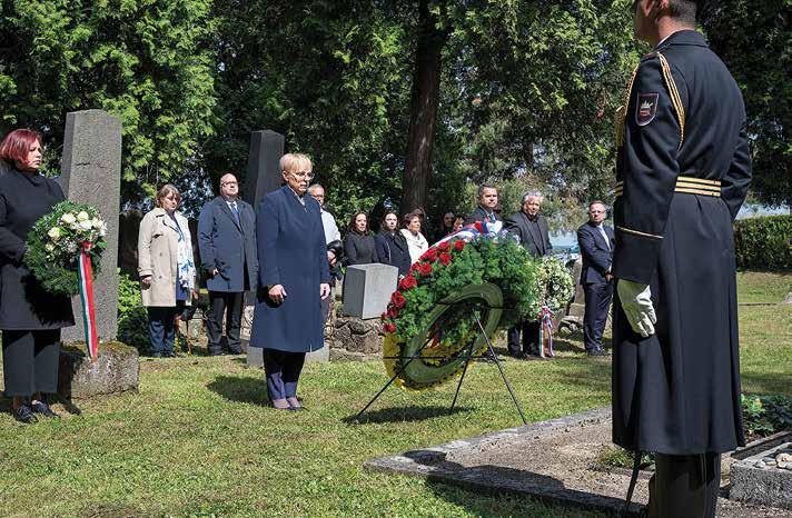 Nataša Pirc Musar, szlovén köztársasági elnök a hosszúfalusi temetőben koszorújával tiszteleg a holokauszt áldozatainak emléke előtt.
