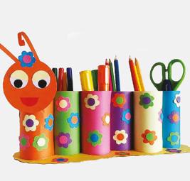 Készíts velünk ceruzatartót az íróasztalodra! A hozzávalók: WC-papíros gurigák, színes kartonpapír, színes lapok, filctoll, ceruza, olló, ragasztó és csipesz. A gurigákat vond be kartonpapírral – vágd méretre, majd ragaszd rá. Ezután ragaszd össze a gurigákat a szélükön. Hogy jól megtartsa a ragasztó, csipesszel fogd őket össze, amíg meg nem száradnak. Közben a kartonodra rajzold meg a cica, a kutyus, a hernyó vagy más állat fejét, lábát, farkát, majd vágd ki őket. A színes lapokból készíts díszítéseket és egyéb részleteket. Ezután a ceruzatartódnak készítsd el az alját: egy vastagabb kartonon egyszerűen rajzold körbe a tartót, vágd ki, majd ragaszd össze. Most az első gurigára ragaszd fel a fejecskét, az utolsóra pedig mehet a farkinca.
