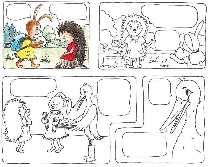 Olvasd el a képregényt és mondd el, szoktál-e segíteni másoknak vagy neked segítettek-e mások? Színezd ki a képregényt a minta alapján!