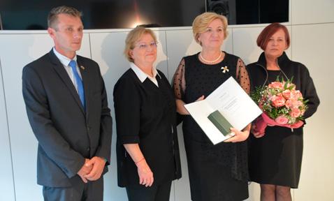 Orbán Dušan, az MMÖNK Tanácsának elnöke, a kitüntetés felterjesztője, Szili Katalin miniszterelnöki főtanácsadó, Zver Ilona kitüntetett és Kelemen Gertrud lendvai főkonzul.