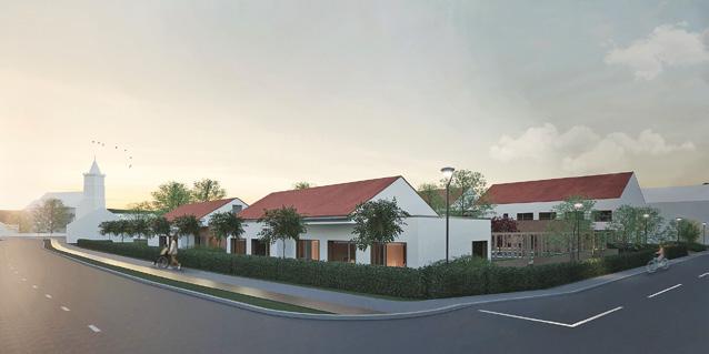 A tér egyik felét tetőteraszos, többszintes épü-