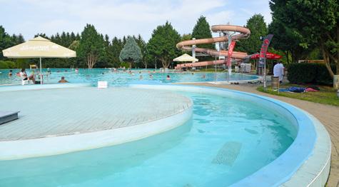 téri fürdőrészben öt medence található: az úszómedence, a tanmedence, a pancsolómedence, a gyógymedence mellett a félig fedett hidromas zszázs-medence a nyári szezonban élményelemfunkciókkal kibővítve várja a fürdőzőket. A szintén fedett élményfürdőben beltéri csúszdákkal, maszszázságyakkal, buzgárokkal, nyakzuhanyokkal és pezsgőülőkékkel ellátott melegvizes medence és jakuzzi biztosítja a kikapcsolódást minden korosztály számára. A strand 8 hektáros területén rendezett környezetben van lehetőség a napozásra. Medencék te-