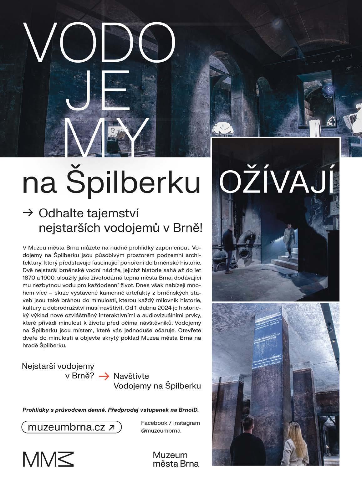KAM v Brně… Vychází od roku 1957 | Číslo vydání: 5/2024 | MK ČR E 12197 | Vydává: TIC BRNO, příspěvková organizace, Radnická 365/2, 602 00 Brno, www.ticbrno.cz | Dodává: Pocket media s.r.o., Jakubské nám. 644/3, 602 00 Brno | IČO: 04541227, DIČ: CZ-04541227 | e-mail: info@pocketmedia.cz | Redakce: redakce@pocketmedia.cz | Šéfredaktor: David Tieku | Editor: Filip Živný | Redakční okruh: Živný (živ), Radka Beránková (rb), Hana Drahokoupilová (hd), Bára Jurášková (jur), Tereza Holotíková (th), Miloš Henkrich (mh), Anna Svobodová (as), Anna Kupčáková (ak), Andrea Polnická (and), Adéla Uhrová (uhr) | Jazyková korektura: Lucie Pokorná | Grafiká úprava: Jindřiška Mikešová | Sazba: Kamila Hrubešová | Autor obálky: Jiří Král | Foto: Ivo Dvořák | Inzerce: obchod@pocketmedia.cz | + 420 608 101 550, + 420 604 239 957 | Přetisk materiálů pouze se souhlasem redakce | Příští vydání vychází: 1. 6. 2024 | Cena pro předplatitele: 63 Kč | FB a IG: @kamwhere | Anglické texty jsou vytvářeny ve spolupráci s Ritou Deanovou, Brno Daily, Centrem pro cizince JMK a Brno Expat Centre | REDAKCE NENESE ODPOVĚDNOST ZA OBSAHOVOU SPRÁVNOST MATERIÁLŮ A INFORMACÍ, ZMĚNY PROGRAMŮ A REKLAM | Předplatné: info@pocketmedia.cz / shop.pocketmedia.cz