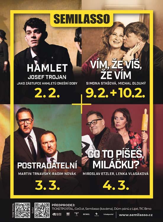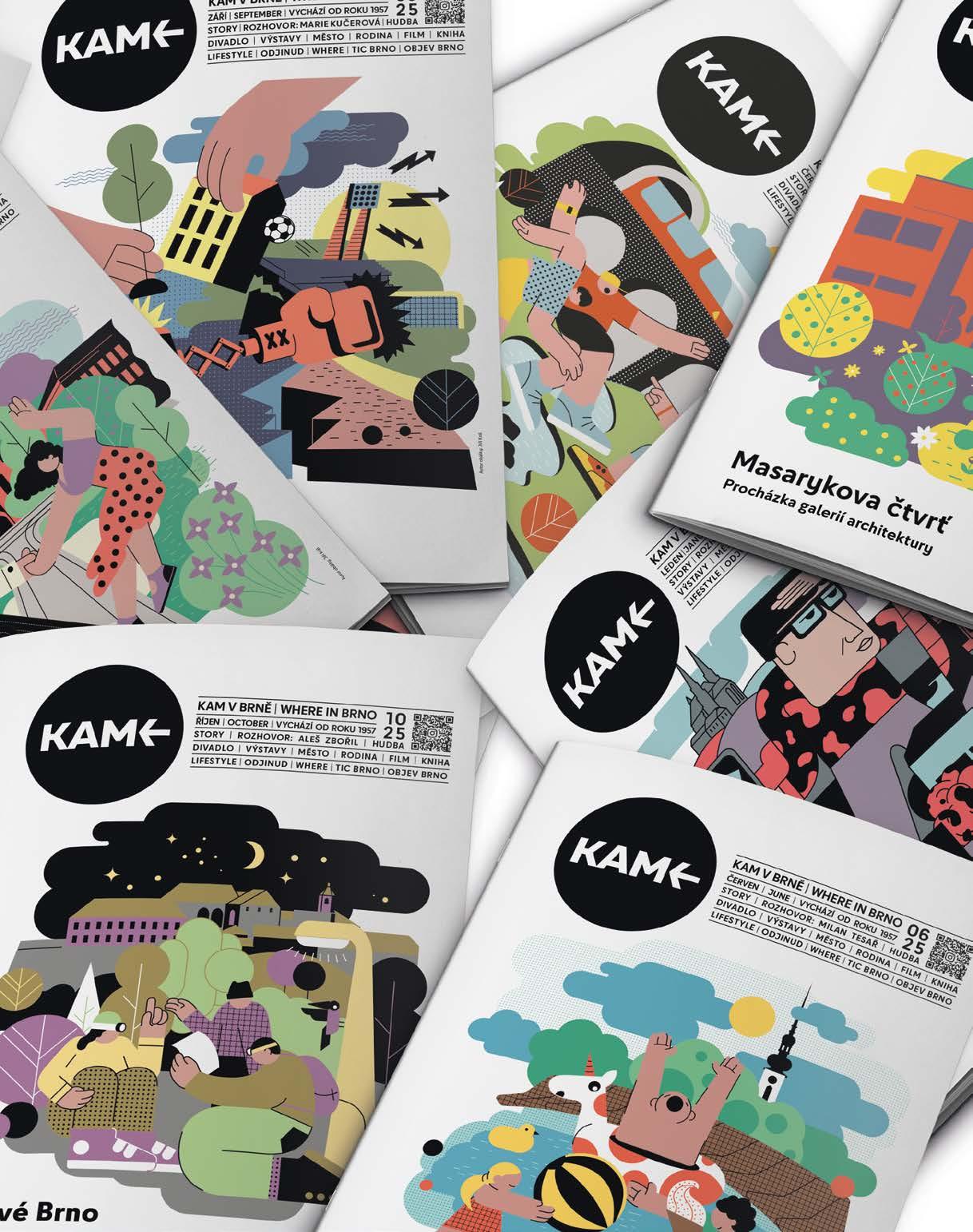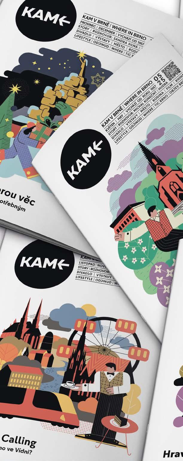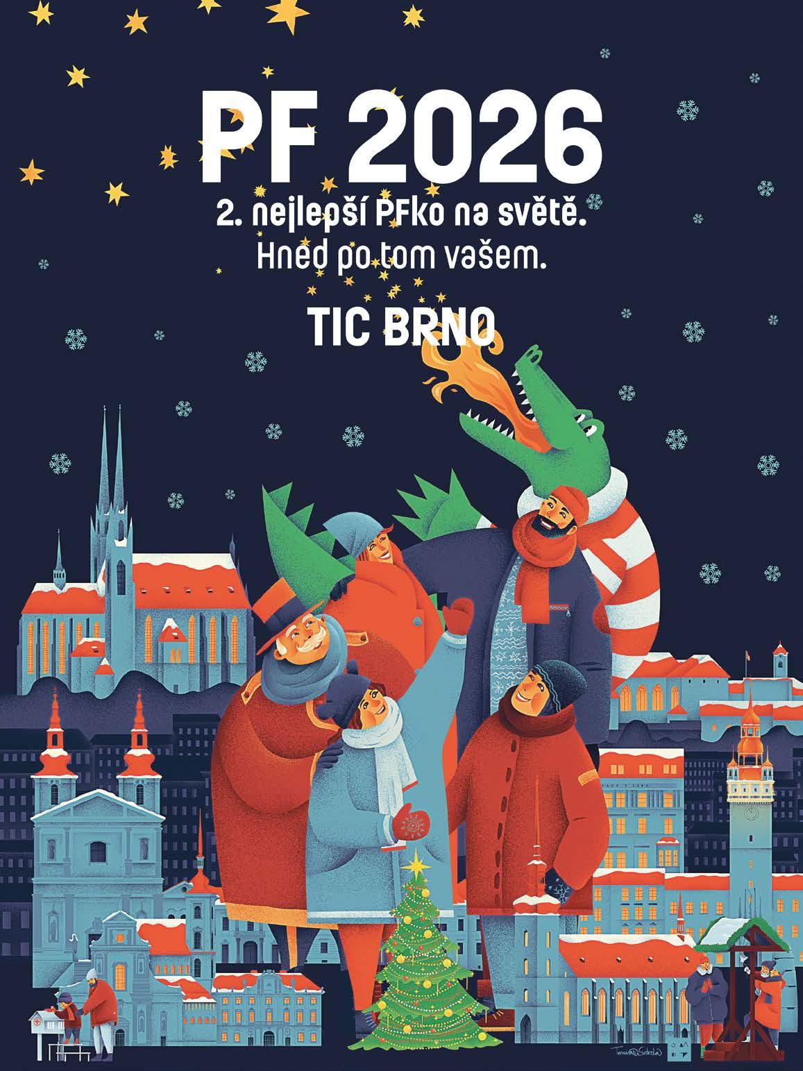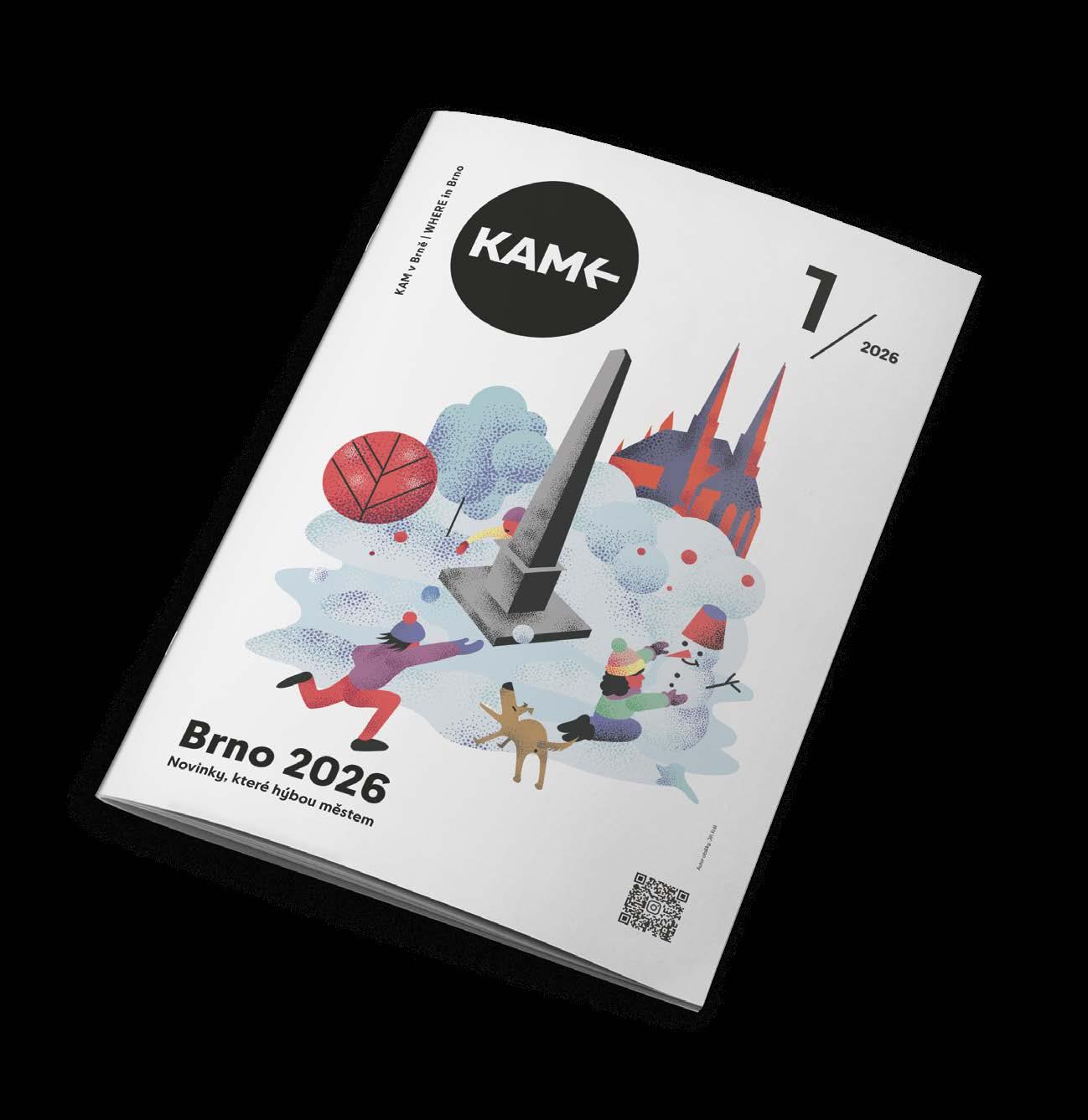 KAM v Brně… Vychází od roku 1957 | Číslo vydání: 1/2026 | MK ČR E 12197 | Vydává: TIC BRNO, příspěvková organizace, Radnická 365/2, 602 00 Brno, www.ticbrno.cz | Dodává: Pocket media s.r.o., Jakubské nám. 644/3, 602 00 Brno | IČO: 04541227, DIČ: CZ-04541227 | e-mail: info@pocketmedia.cz | Redakce: redakce@pocketmedia.cz | Šéfredaktor: David Tieku | Editor: Filip Živný | Redakční okruh: Živný (živ), Radka Beránková (rb), Karolína Hlubinková (kh), Miloš Henkrich (mh), Anna Svobodová, Anna Kupčáková (ak), Andrea Polnická (and), Adéla Uhrová (uhr), Tereza Vondrášková (von), Petra Antalová (ls) | Jazyková korektura: Lucie Pokorná | Grafická úprava: Jindřiška Mikešová | Sazba: Kamila Hrubešová | Autor ilustrace na obálce: Jiří Král | Foto: Viola Hertelová a Gabriela Eliáš | Inzerce: obchod@pocketmedia.cz | + 420 608 101 550, + 420 604 239 957 | Přetisk materiálů pouze se souhlasem redakce | Příští vydání vychází: 30. 1. 2026 | Cena pro předplatitele: 72 Kč | FB a IG: @kamwhere | Anglické texty jsou vytvářeny ve spolupráci s Ritou Deanovou, Brno Daily, Centrem pro cizince JMK a Brno Expat Centre | REDAKCE NENESE ODPOVĚDNOST ZA OBSAHOVOU SPRÁVNOST MATERIÁLŮ A INFORMACÍ, ZMĚNY PROGRAMŮ A REKLAM | Předplatné: info@pocketmedia.cz / shop.pocketmedia.cz
