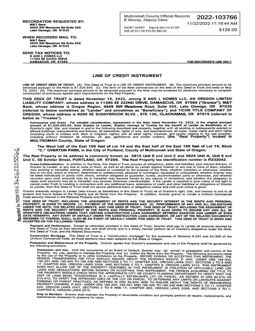 Subject Property: 5815 & 5825 SE Schiller St