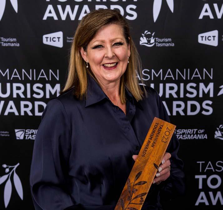 Karen Phillips as this year’s Tasmanian Tourism Champion – our industry’s highest honour. Karen has spent more than 40 years in tourism, dedicating herself to the industry but also to mentoring others. Karen and her husband founded ‘Apartments on Fraser Bicheno’ in 2017 – a multiaward-winning self-contained accommodation business on Tasmania’s stunning east coast. On top of this, Karen has volunteered her time and expertise on numerous committees and boards, such as Bicheno Beams, Women In Tourism & Hospitality Tasmania, Bicheno Food and Wine Festival, and many others. Her hard work has resulted in her being recognised with several awards, including Visit Northern Tasmania’s ‘First Class Volunteer’ and ‘Personality of the Year’