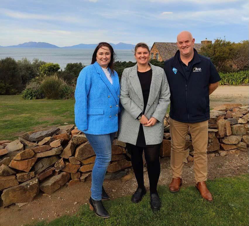 Amy Hills with Grace Keath, CEO East Coast Tasmania Tourism, and Steve Old, CEO THA.