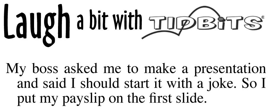 We reserve the absolute right to accept, reject, discontinue or refuse any advertisement personal or commercial that we deem may not be conducive for our publication or Tidbits®. The publisher does not assume any responsibility for the claims of its advertisers. Tidbits® is committed to remain a family oriented publication. www.tidbitsmov.com