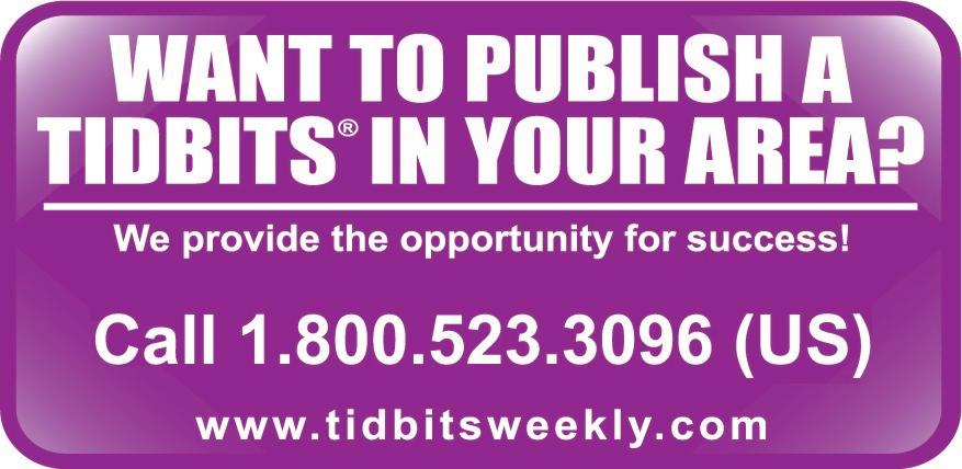We reserve the absolute right to accept, reject, discontinue or refuse any advertisement personal or commercial that we deem may not be conducive for our publication or Tidbits®. The publisher does not assume any responsibility for the claims of its advertisers. Tidbits® is committed to remain a family oriented publication. www.tidbitsmov.com