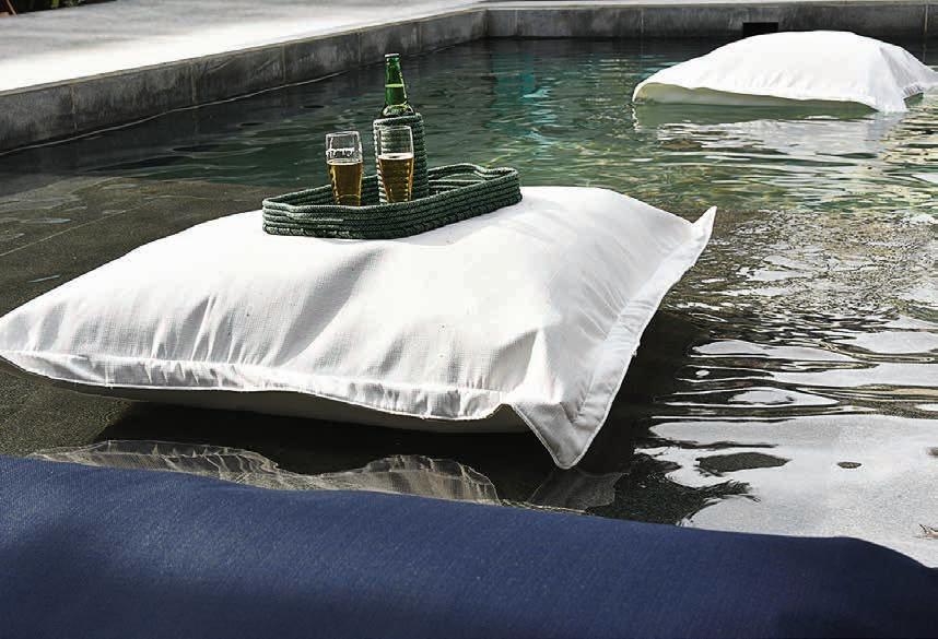 Almofadas flutuantes para uso em piscina, deck, jardim ou indoor.