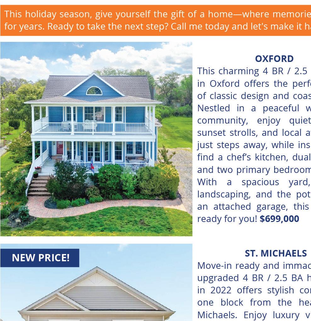 Rio Vista, St. Michaels - Nestled in the trees on a quiet cul-de-sac just 5 minutes from the historic district, this handsome home features a first floor primary suite plus two bedrooms and a bonus room upstairs. Rio Vista offers boat slips ($225 for the season) and a waterfront picnic area, plus public sewer and water but no town taxes. $549,900