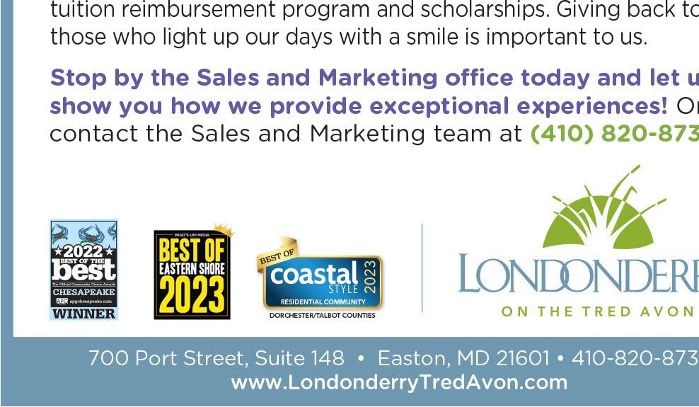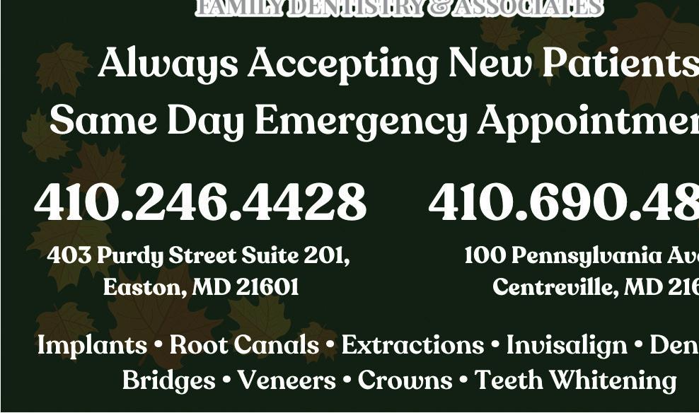 150 410.251.2838 Tidewatercleaningservice.com Reliable & Flexible • Locally Owned & Operated • Background-Checked Security Cleared • FREE ESTIMATES • Excellent Customer Service C LEANING S ERVICE “Leave” your cleaning to us! 410-822-7716 7 S. Washington St., Easton CrackerjacksToys.com Woodland mushroom house with cute finger puppets! www.trinitychimney.com 443-602-4306 MHIC #114994 Inspections Restorations Installations Fireplace Make-Overs A name you can depend on to provide faithful, professional Chimney and Hearth Services