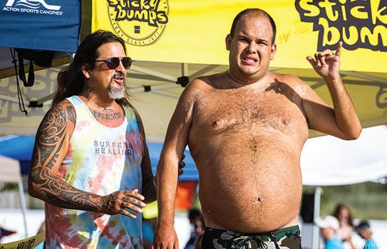 Israel recalls the pivotal moment when he learned the therapeutic nature of the ocean and surfi ng for Isaiah and other kids like him. The fam-