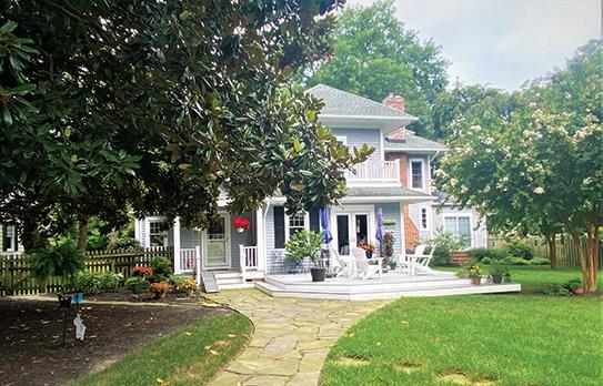 Gardener’s Oasis in Historic St. Michaels. The spaciousness of this home will surprise you. 3 generous BRs including main level primary suite, family room plus living and dining. O ce could be additional BR. Private patio overlooking magni cent gardens, large shed and o street parking. $875,000