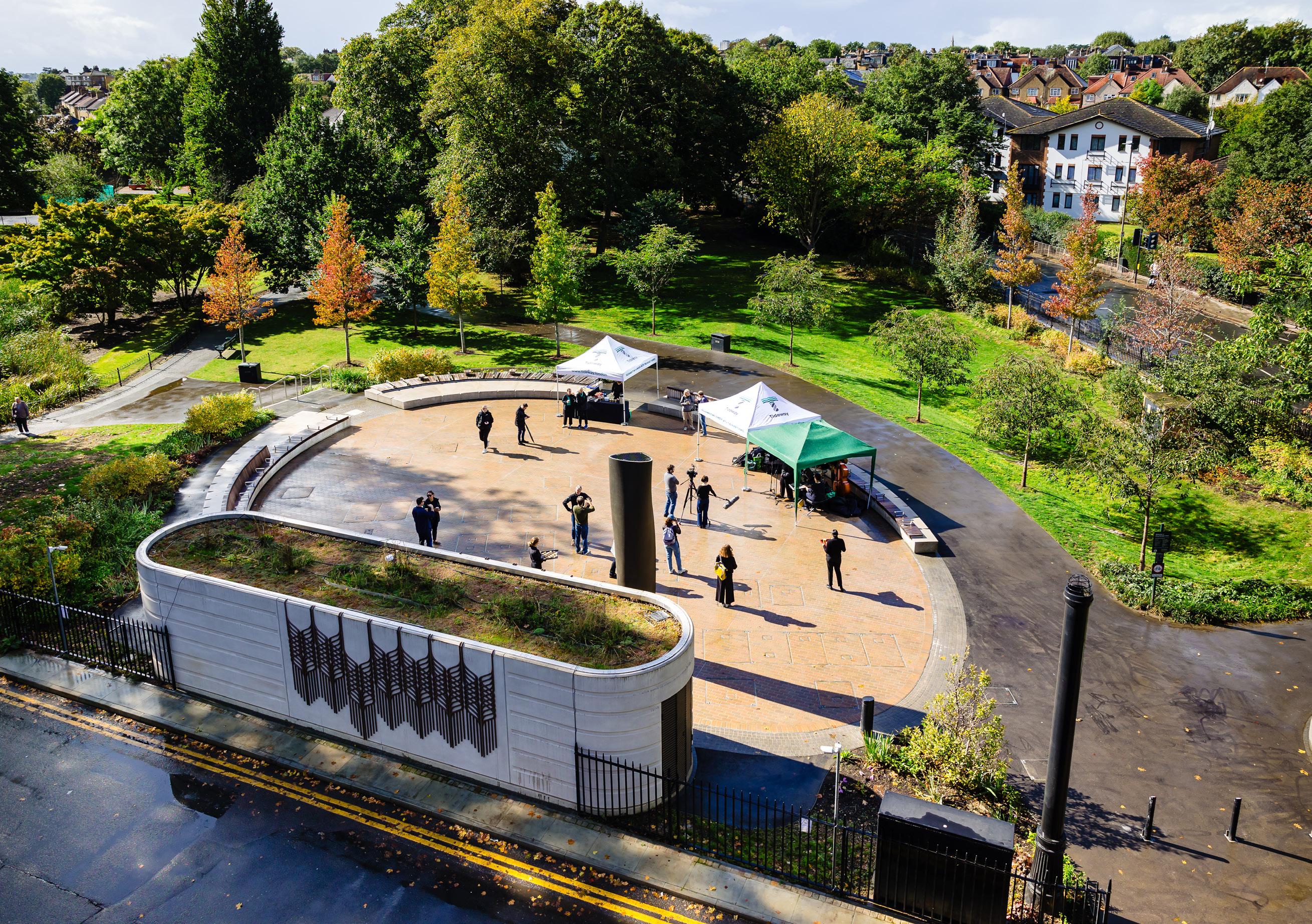 The new community space enhances the existing park, providing a new pedestrian entrance as part of an accessible step-free route into the park, new seating areas and a space that can be used for different activities throughout the year.