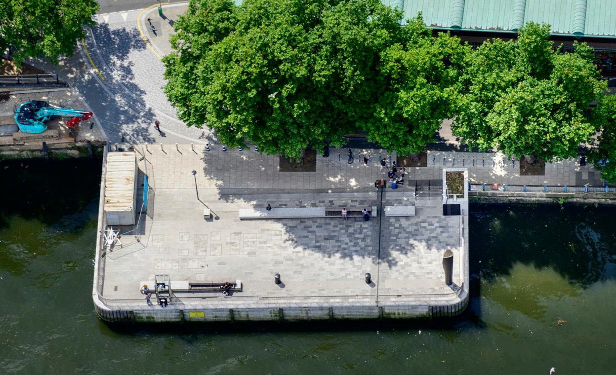 The new space has extended the Thames Path and created a place to pause and enjoy the additional visual and physical connection with the river. Other improvements include relaid paving, improving the existing tree pits with resin bound gravel and planting new trees.