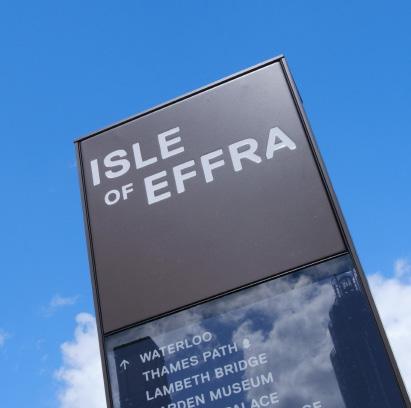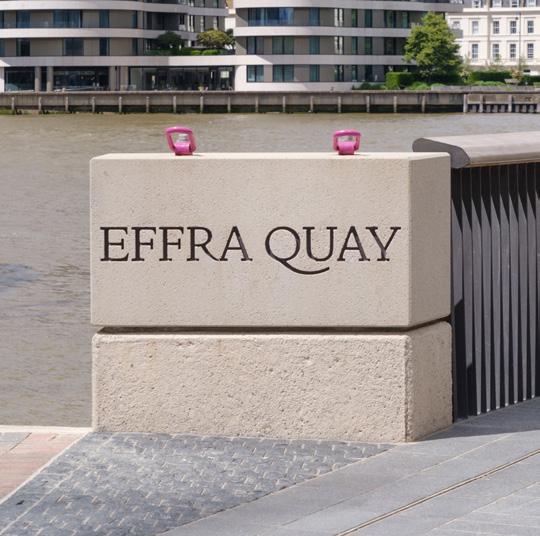 The spaces get their name from the fact that one of the two Combined Sewer Overflows (CSOs) that connect to the main tunnel at this site was previously the River Effra. The Effra was one of London’s ‘lost’ rivers, Thames tributaries which became so polluted they were put in underground pipes to form part of London’s first sewerage system. This is referenced in the paving on the Isle of Effra and one of the poems on Effra Quay’s ventilation columns - these poems are part of a series, Hidden Rivers, Hidden Times by Dorothea Smartt, which reveal human stories relating to the lost rivers.