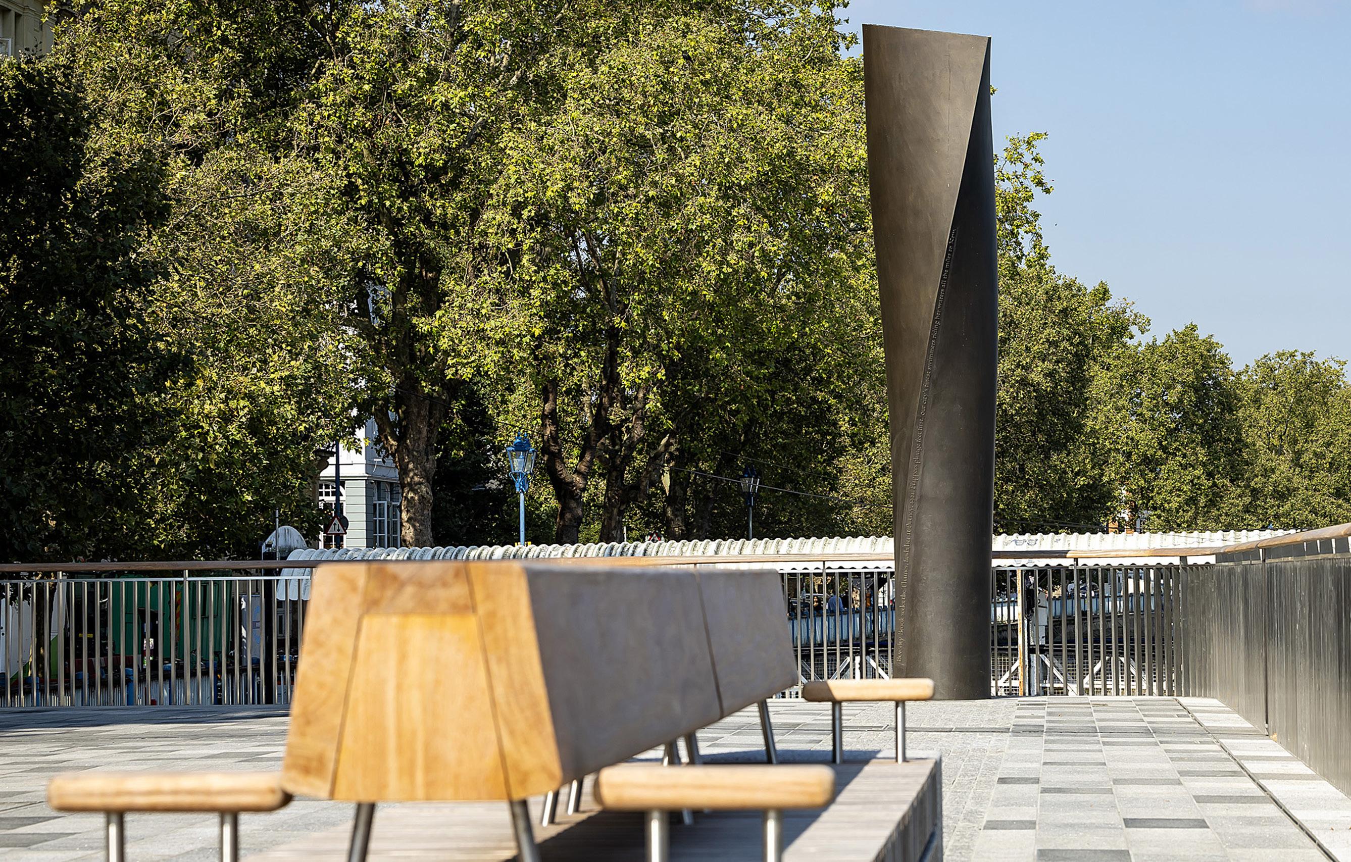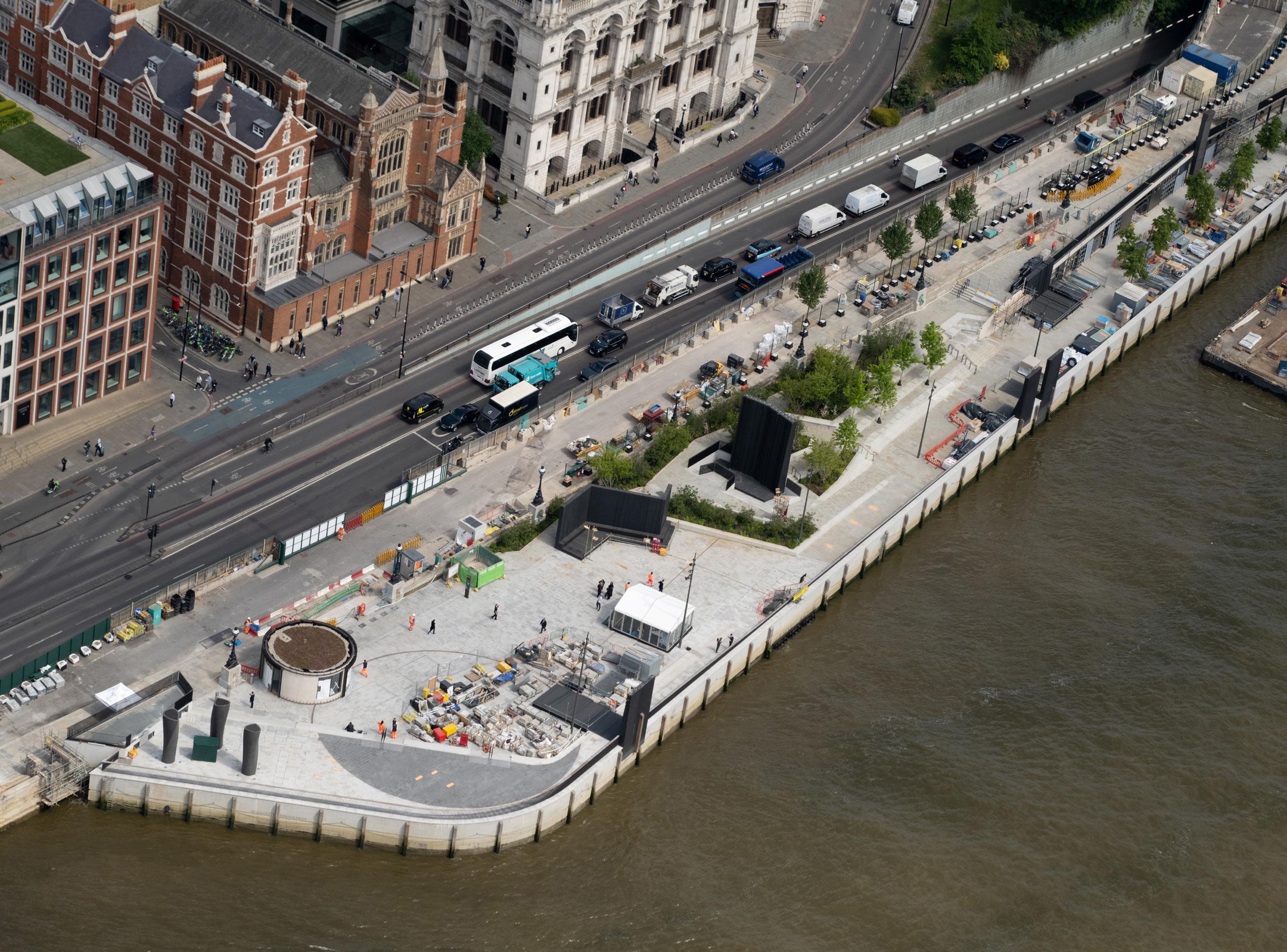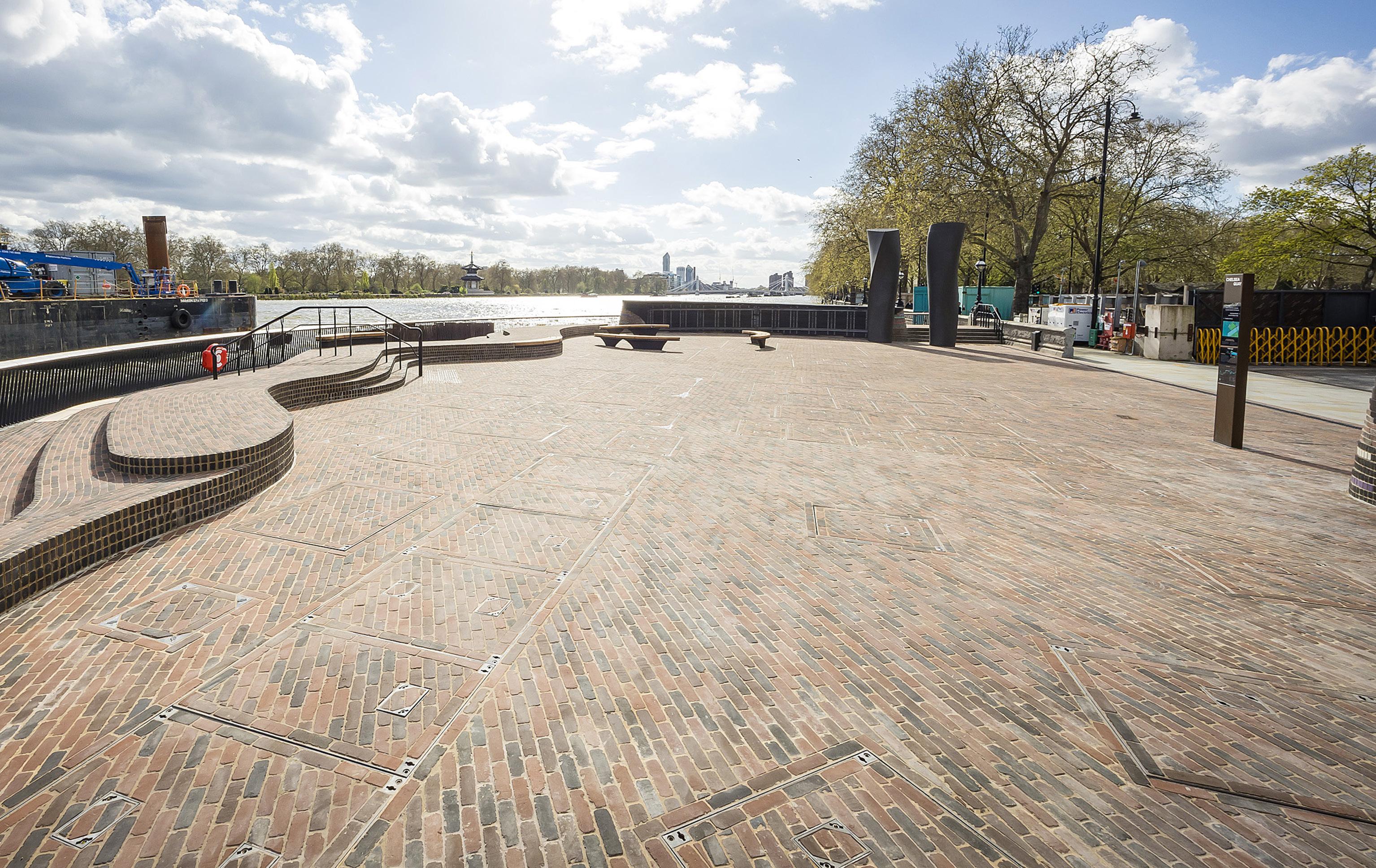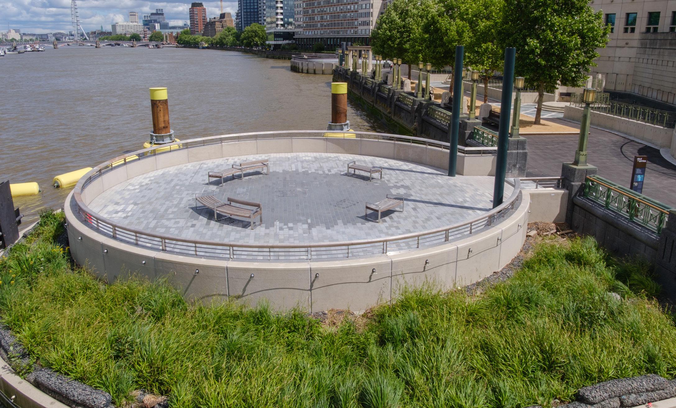The new 1,085m2 riverside space is a major new public area for Victoria Embankment in central London, where there were previously few areas to see over the river wall and no areas of scale for people to gather.