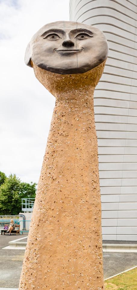 with water via a ‘waterwall’ which is part of the site’s public art called ‘Stages’ – five sculptures by artist Nathan Coley. An undercroft area near the bridge includes public toilets and commercial spaces.