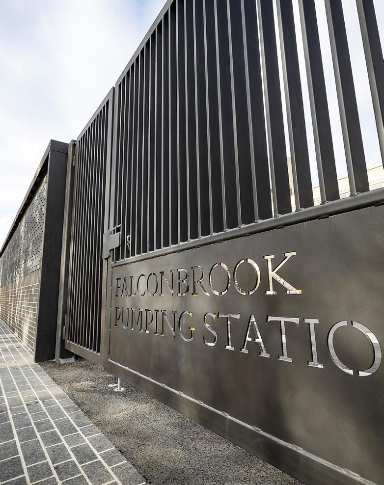 The space integrates an artwork that responds to the heritage of the pumping station and origins of the sewer system. A poem created by Frances Presley, cast in bronze and located in the ground at the site entrance, explores the history and written records of the ‘lost’ Falcon Brook and its surrounding land. The poet collaborated with type designer Robert Green to design the layout of the poem using a font based on the Doves Type.