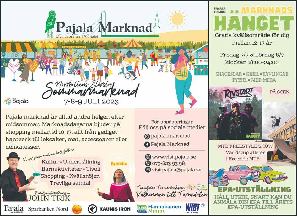 Monica Stubé 070-515 80 07 Åke Tapani 070-330 50 67 Kontaktformulär Företagarevill du nå alla i Boden? Välkommen att kontakta oss på Boden Gratistidning så hittar vi på en bra lösning! Vecka 22 2023 Gratis till alla hushåll och företag i Boden • Årgång 14 • annons@gratistidning.com • tipsa@gratistidning.com • boden.gratistidning.com • boden.lokalteve.se