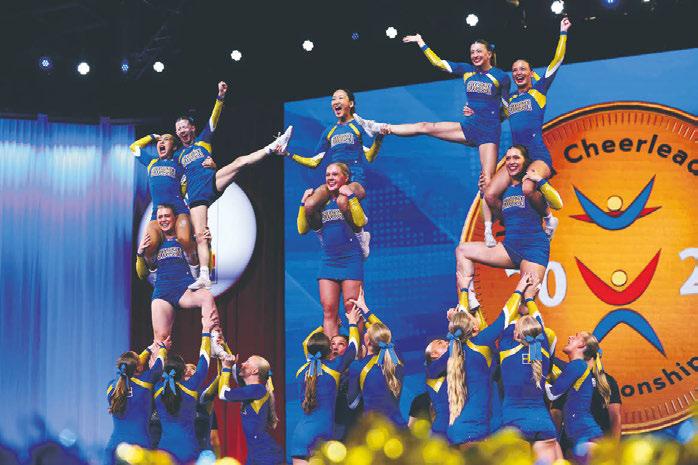 Sveriges damlandslag i cheerleading är ett av fyra lag som nominerats i kategorin ”Årets lag” för Idrottsgalan 2026. En av utövarna i laget är från Boden och heter Nora Johansson. Foto: Action Moments