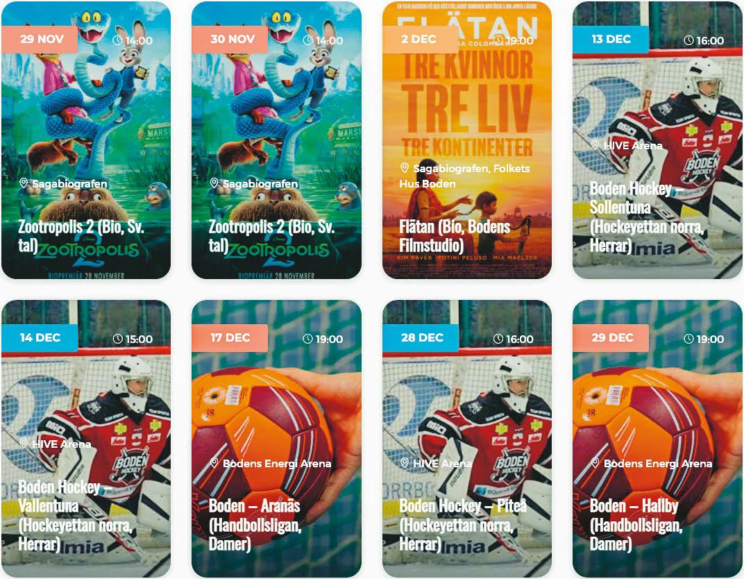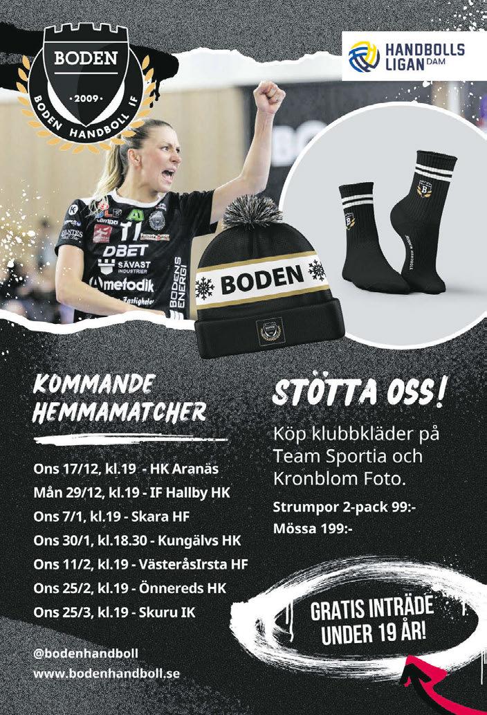 • Matchfika/hamburgare på Bodens Energi Arena • och Björknäsparken.