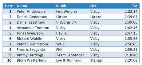 Snabbast av alla löpare från Gotland i årets upplaga av TCS Lidingöloppet var Peter Andersson från FindWind.se. På andra plats bland löparna från Gotland kom Dennis Andersson från Lärbro och trea blev Daniel Seestrand från Visborgs OK.