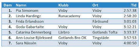 Bland damerna kom Pia Simonsen från Visby först i mål, före tvåan Linda Hardingz från Runacademy och trean Frida Erlandsson från Fårösund. TCS Lidingöloppet är världens största terränglopp och en del av En Svensk Klassiker.