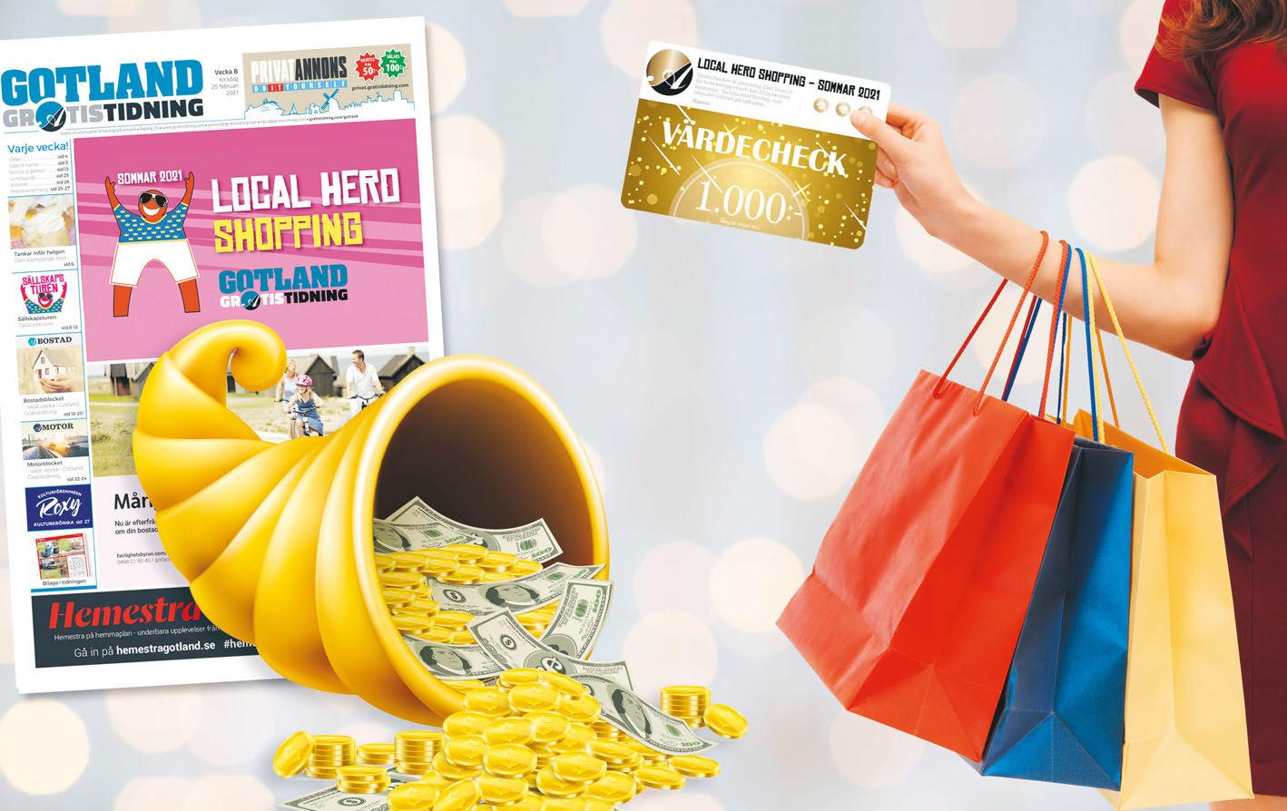 I början av nästa år genomför Gotland Gratistidning tillsammans med ett antal deltagande företag ”Local Hero Shopping”. Det är en tävling där den lokala handeln gynnas på ett smart sätt. Utöver själva annonseringen bidrar huvudvinsterna i form av värdecheckar för tiotusentals kronor till företagen vid inlösen.