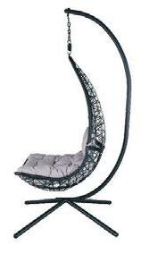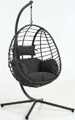 Elegant hängstol med dyna i svart konstrotting för altan, trädgård och poolkant. Pris: 2.450:-