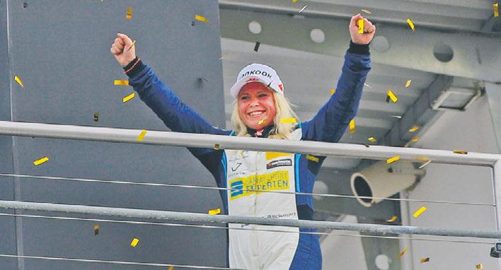 skapet. Teamet jobbade sedan på att få ihop bilen igen till kval 2 på lördag eftermiddag där Jessica kvalade in på en tredje plats, vilket också blev hennes startposition till söndagens Race 2. – Jag kom till Hockenheim med 38 poängs försprång till han som låg trea i mäster skapet. Men dom poängen åt han upp snabbt när jag fick motgång efter motgång. Inför Race 2 på söndagen var det bara en sak som gällde. Om Szymon Ladniak vann racet var jag tvungen att bli minst 2:a i mål annars skulle han vinna silvret i mästerskapet, säger Jessica Bäckman.