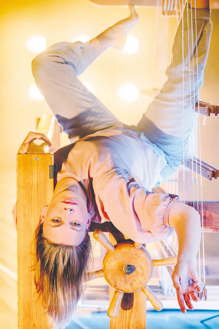 Föreställningen beskrivs som ett möte mellan den rörelsebaserade scenkonsten och den vävande textilkonsten.