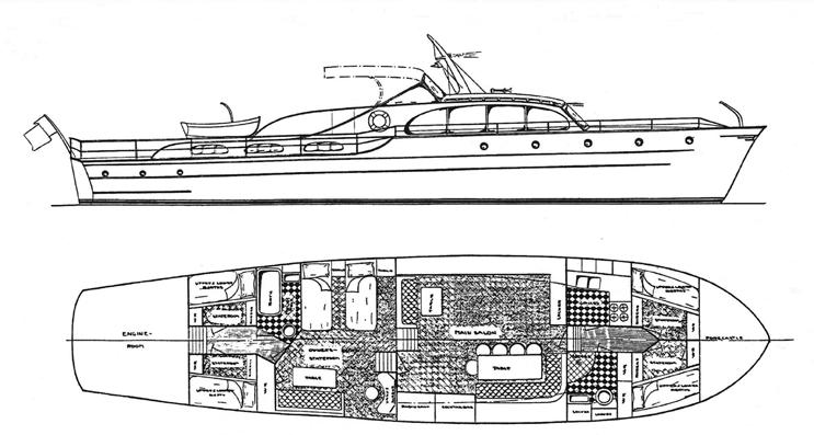 båten. Installationerna för brandskydd för V8 bensin sitter kvar från originalet.