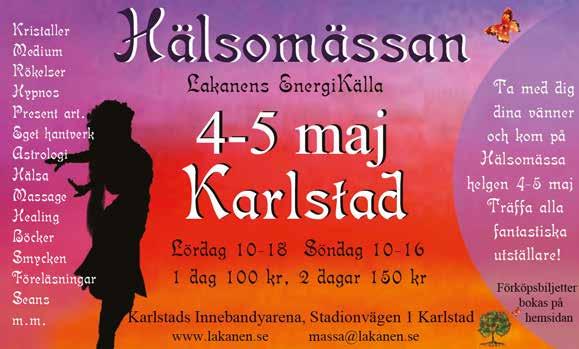0939-7140 (19,90 kr/min) STJÄRNREGN Tarot & Medial vägledning Djurkommunikation Öppettider 08.00–01.00 varje dag www.stjarnregn.se 0939 1943 Seans / Kurser Seans / Kurser Mediumet Mediumet Pehr Trollsveden & Karin Pehr Trollsveden & Karin Boka biljetter i din stad via länken eller QR-koden Boka biljetter i din stad via länken eller QR-koden www.ticketmaster.se/artist/pehr-trollsveden-karin-dahlqvist-biljetter/930318 www.ticketmaster.se/artist/pehr-trollsveden-karin-dahlqvist-biljetter/930318 www.karindahlqvist.se www.karindahlqvist.se