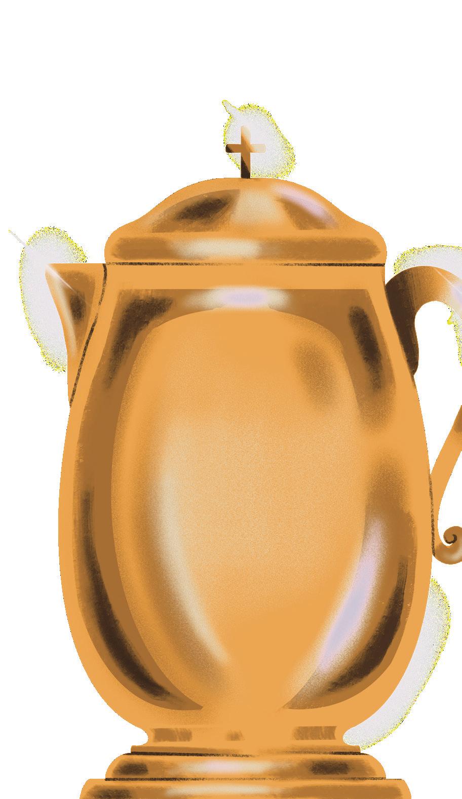 – Vi häller upp det i en kanna eller glastillbringare och då blir det luftat antar jag, men det är inte det som är syftet. Det brukar vara en kyrkvärd eller vaktmästare som dukar upp kalk* och nattvardskärl i sakristian, sedan bärs det hela ut till altaret där prästen förbereder nattvardsgudstjänsten genom att ta fram brödet ur ett särskilt skrin och hälla upp vinet i kalken från kannan eller tillbringaren.