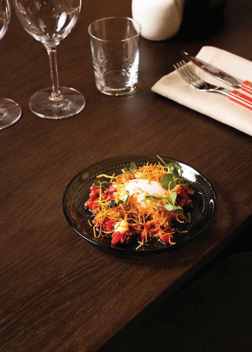 En modern tolkning på Bellas sätt av skogsglögg med inspiration från den svenska vinterskogen. Skogsglögg möter syrliga lingon, kaneldoftande sockerlag och ett mjukt täcke av krämig maräng – en frisk, vild och julig upplevelse som serveras kall.