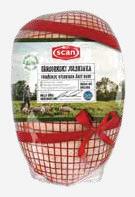 Scans fina ekologiska julskinka tar tillvara på alla skinkans delar. Vi delar skinkan i 4 delar för att få en cirka vikt 2 kg per julskinka. Skinkans lite mindre form passar utmärkt den lilla familjen. Skinkan är en klassisk julskinka med god sälta och bra textur.