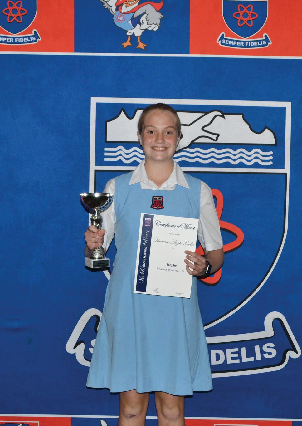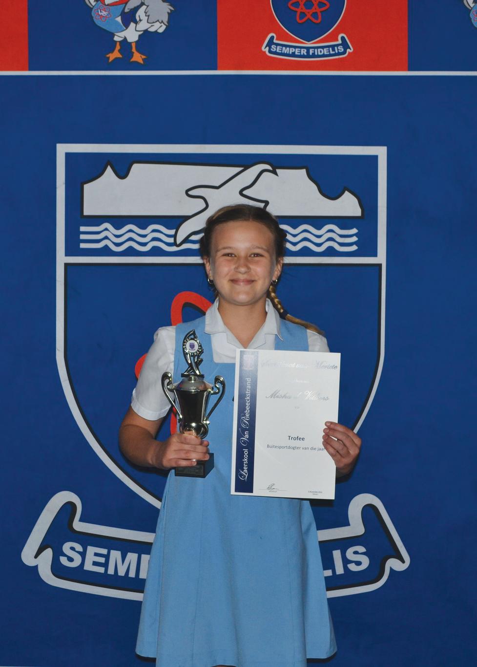 This year we award a polite young lady who is always ready with a smile. Her courteous disposition, exemplary behaviour, and manners, in addition to her immaculate appearance, make her truly deserving of this award. The floating trophy for Deportment is awarded to Elmarie Michaels.