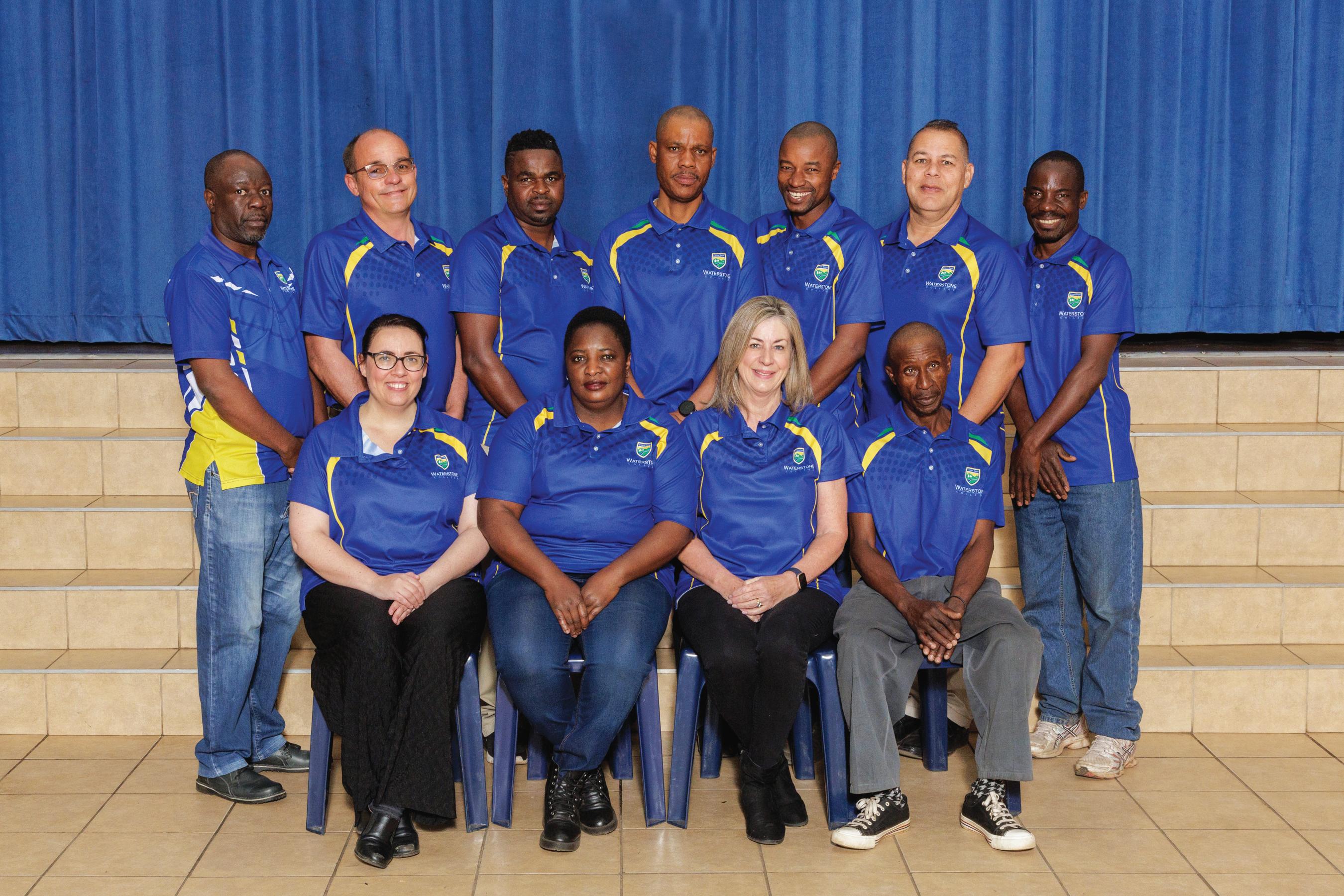 Front: A. Lala, L. Gololo, K. Jaskolka, T. Botha, T. Petersen, Z. Ndiki. Back: J. Wilson, G. Guy-Nkoy, R. Geldenhuys, M. Gxumisa, L. Geldenhuys, C. van Staden.