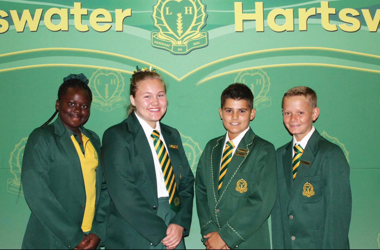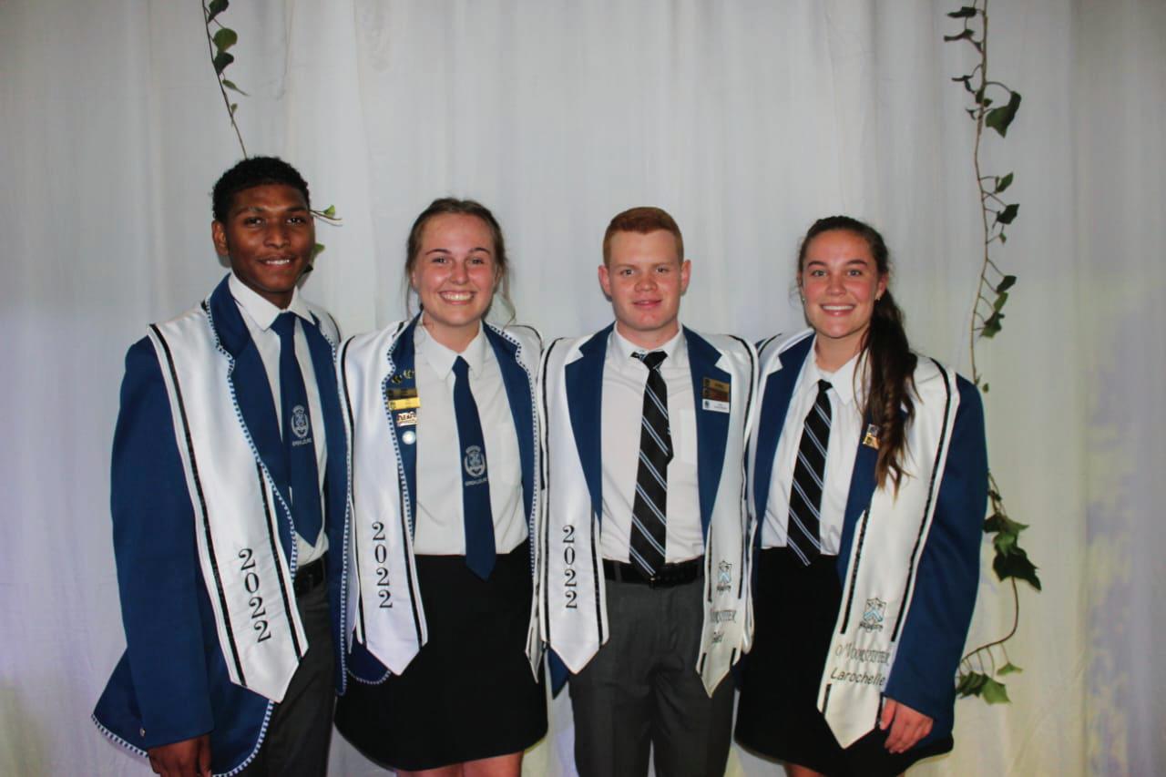 (onderhoofmeisie), Anke van Bergen (hoofmeisie), Gysbert Jooste (hoofseun) en Christoff Gous (onderhoofseun). Hoofleiers Hoërskool