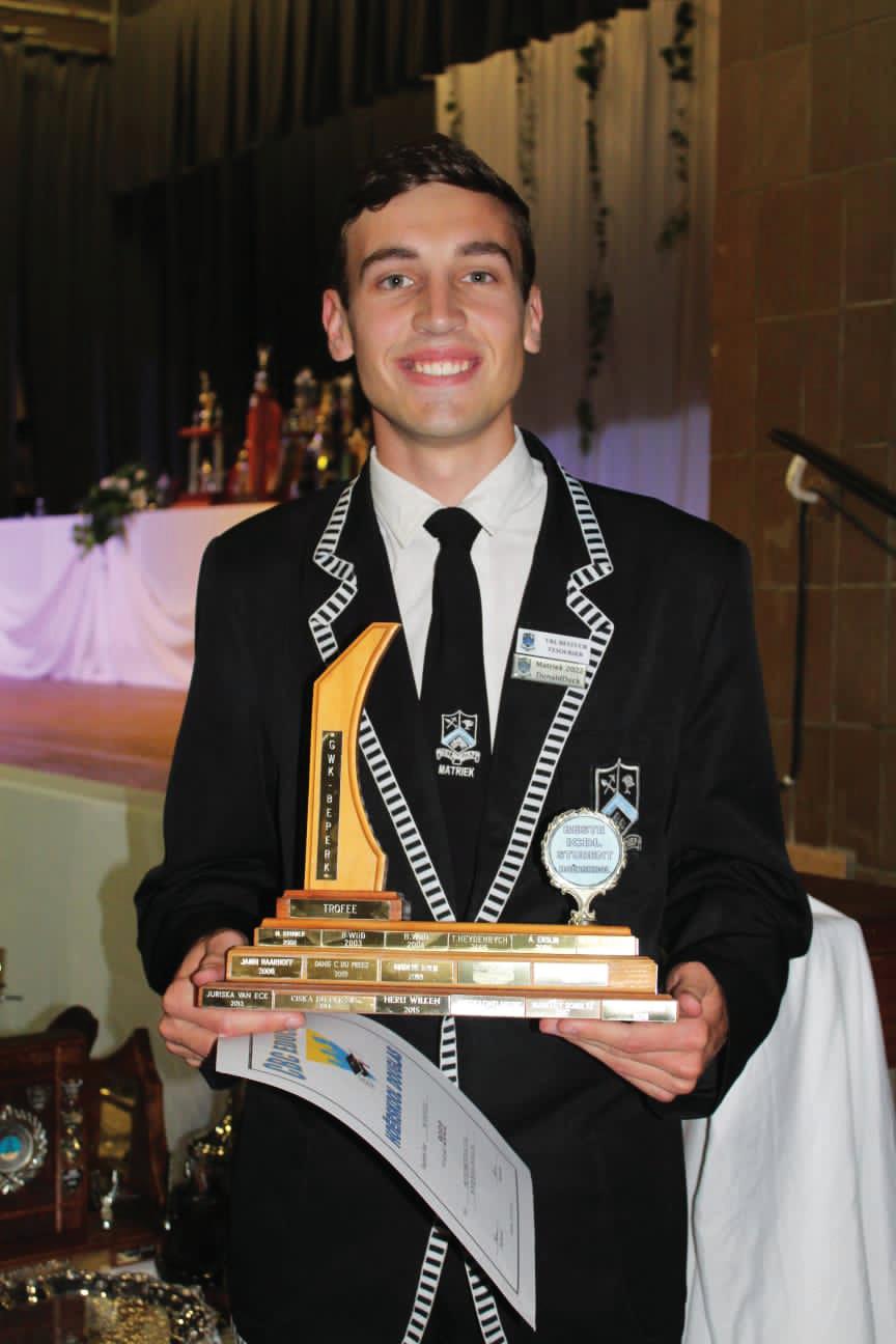 Baatjies Fred Faber Trofee vir beste prestasie in Wiskundige Geletterdheid. Graad 12 Marelize Harris Die Japie Steenkamp Trofee vir beste prestasie in Toerisme en Sonet Bosman Trofee vir Veelsydigheid. Graad 12 Jozua Engelbrecht Mc Knight Plate vir beste prestasie in Engels Eerste Addisionele Taal. Graad 12 Victor Smith Grobbelaar Trofee vir beste akademiese prestasie in Landboubestuur, Trofee vir beste prestasie in Landboubestuur. Graad 12