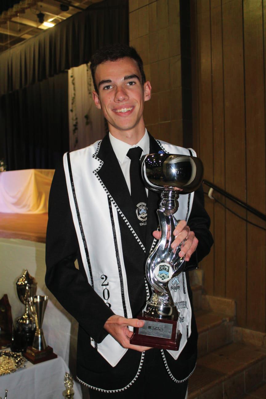 in Afrikaans Huistaal, Mc Knight Plate vir beste prestasie in Engels Eerste Addisionele Taal, Jan Theron Trofee vir beste prestasie in Lewenswetenskappe, Stemmet Trofee vir beste prestasie in Fisiese Wetenskap, Corwyn en Annelie Botha Trofee vir beste prestasie in Wiskunde, Johan en Colleen Jacobs Trofee vir beste prestasie in Rekeningkunde, Trofee vir beste prestasie in
