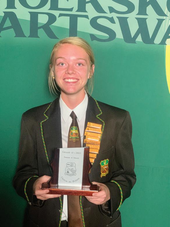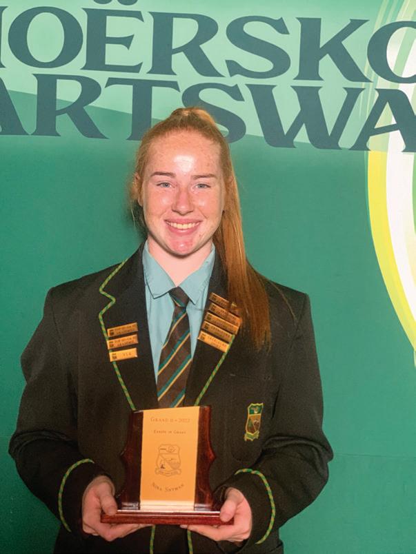 o.16 Rugbyspeler van die jaar, o.19 Kolwer van die seisoen, Vol Erekleure vir rugby en 2022 Sportman van die jaar. Hoofleiers vir 2023 Voor: Onderhoofdogter vir 2023: Marilie Kotzé, Onderhoofseun vir 2023: Mothomone Machaba. Agter: Hoofdogter vir 2023: Keila Fourie, Hoofseun vir 2023: Ethan West.