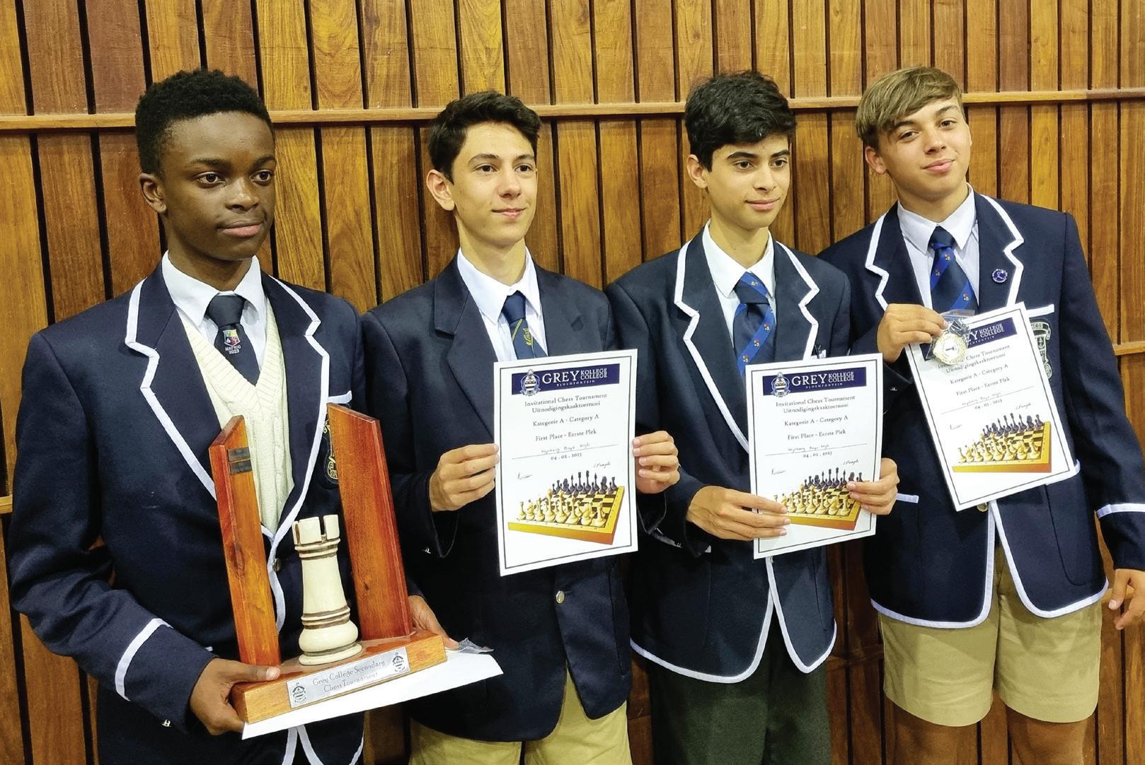 Our First and Second teams played in the A section of the tournament (26 teams) and our Third and Fourth teams in the B section (34 teams). The quality of Wynberg chess shone through with our A team winning the A section and our B team placing fourth. In the B section, our two teams earned a bronze medal and seventh place respectively. The first team must be commended for only losing 3 points during the entire tournament, compiling 15 wins, 4 draws, and 1 loss in their 20 games. Kevin Karengera playing at board one was the player of the Tournament winning the Board One prize for his four wins and a draw – all against nationally rated players.