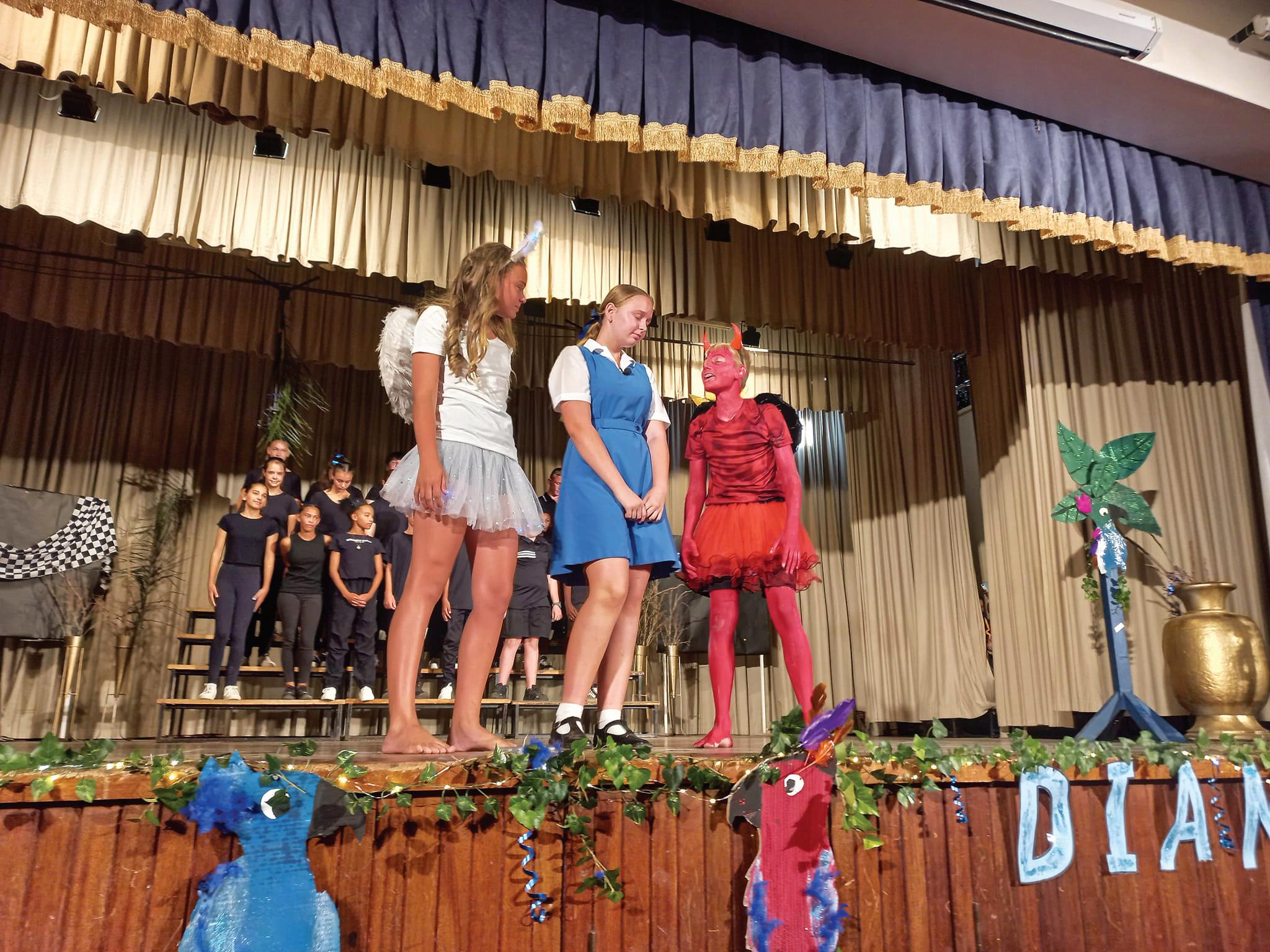 Natuurlik het die gehoor geskater toe ons eie Juffrou Stacy ook haar draai op die verhoog maak - tot die duidelike verbasing van die ander akteurs en spreekkoor.