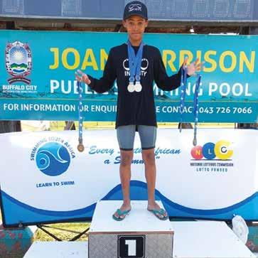 • Shani Coetzee kom 4de in die dogters o/16 50m rugslag met ‘n tyd van 48,29s.